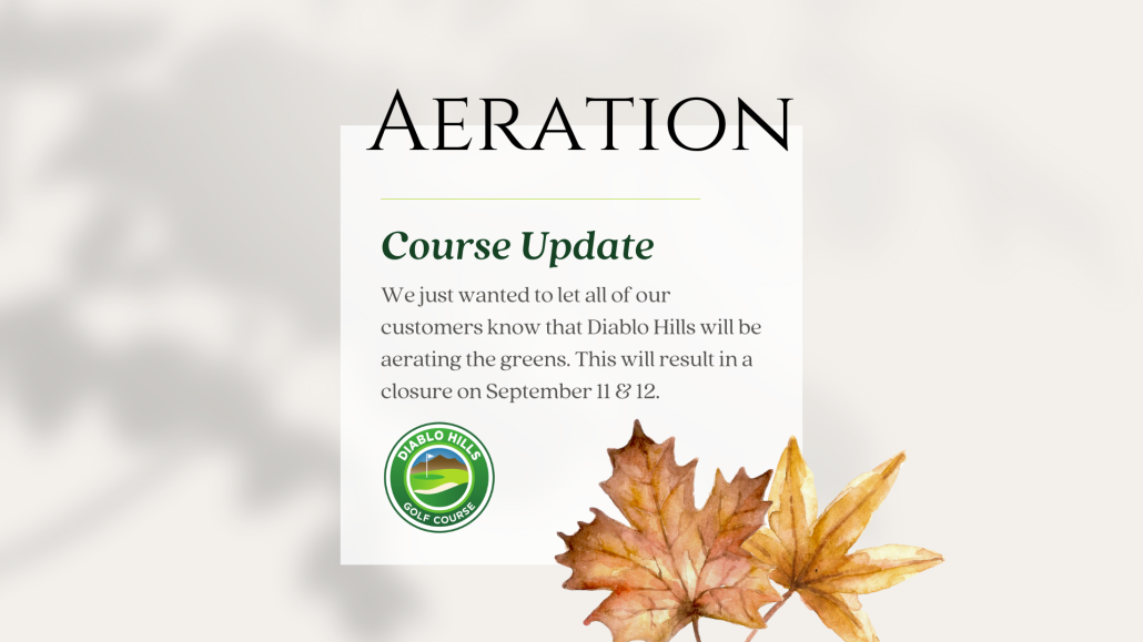 We just wanted to let all of our customers know that Diablo Hills will be aerating the greens.