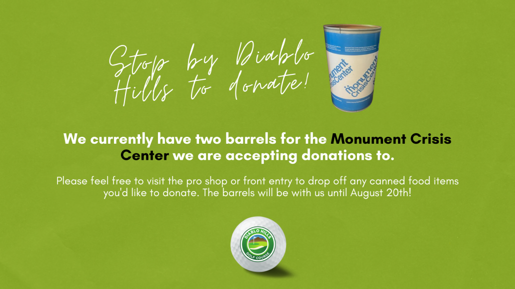 Please feel free to visit the pro shop or front entry to drop off any canned food items you’d like to donate.